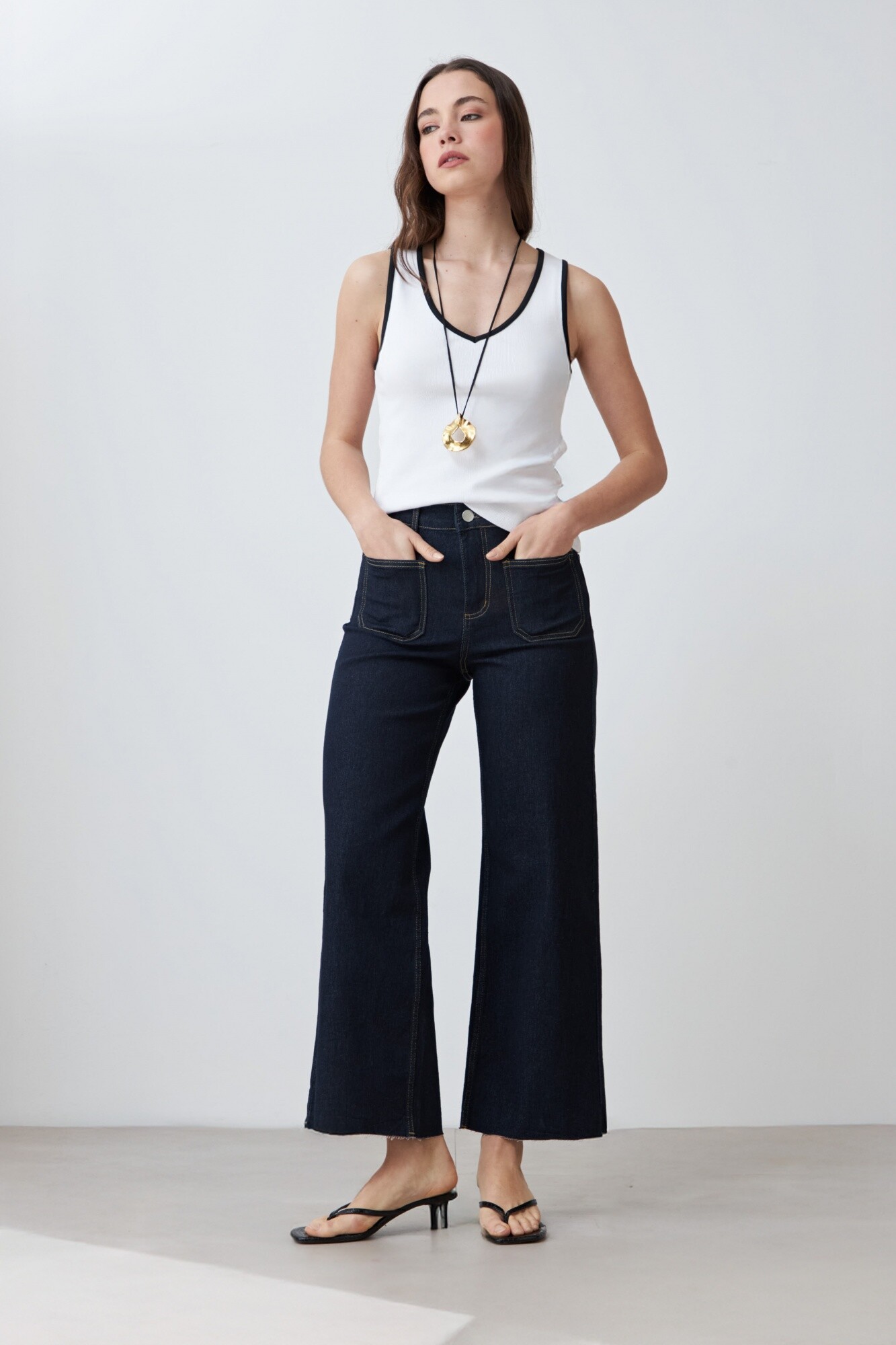 $ 672 * el descuento es aplicado sobre el primer precio de la temporada. Top de escote en V confeccionado en tejido canalé.