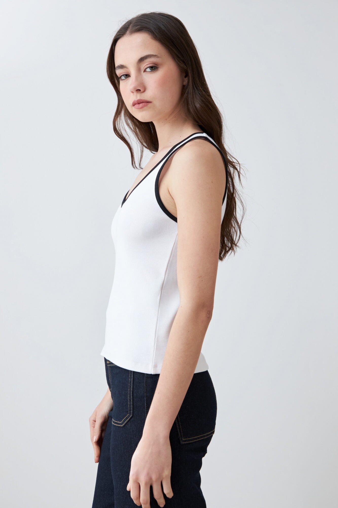 Nuevos Top canalé con vivo en contraste - blanco