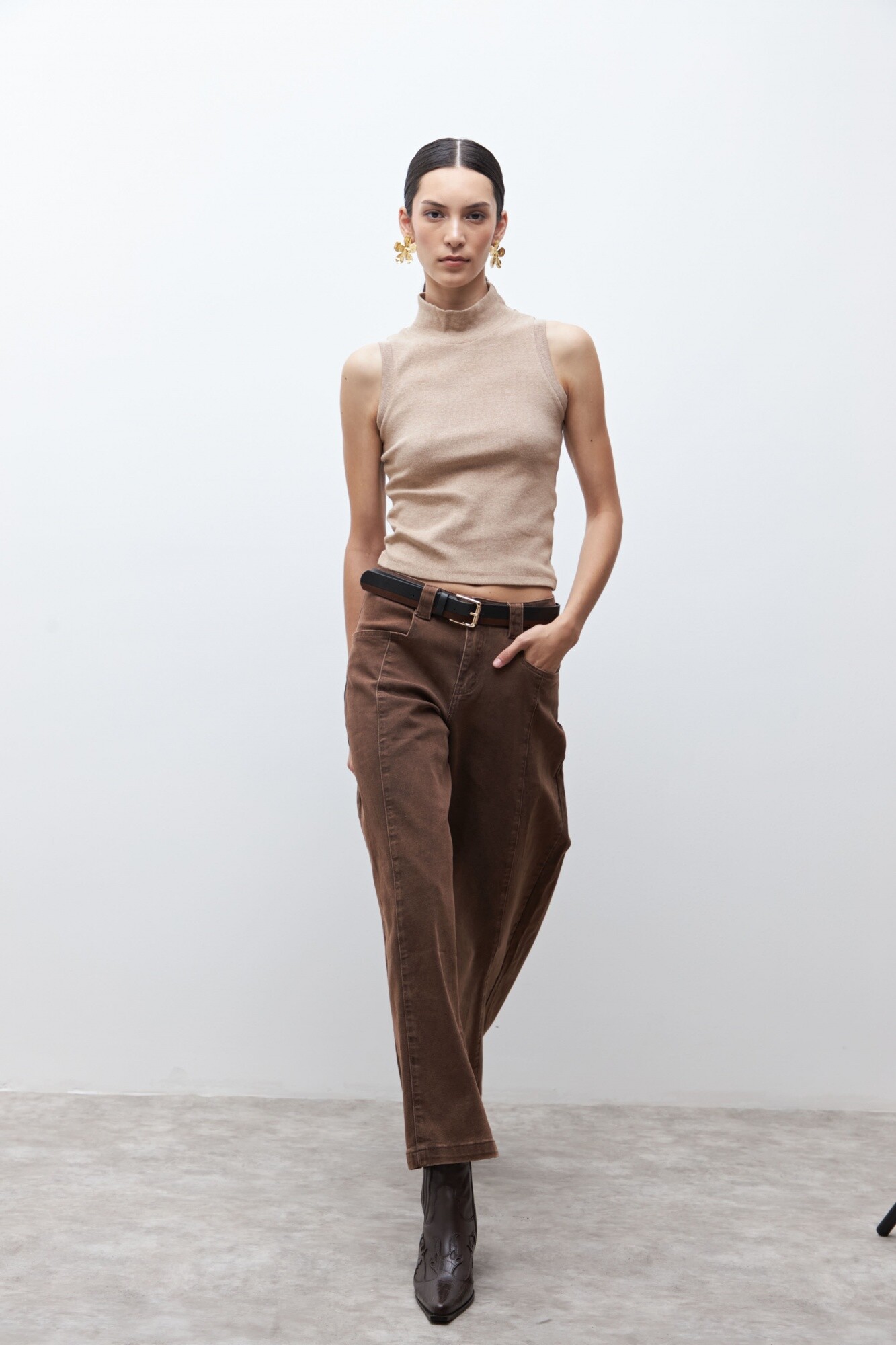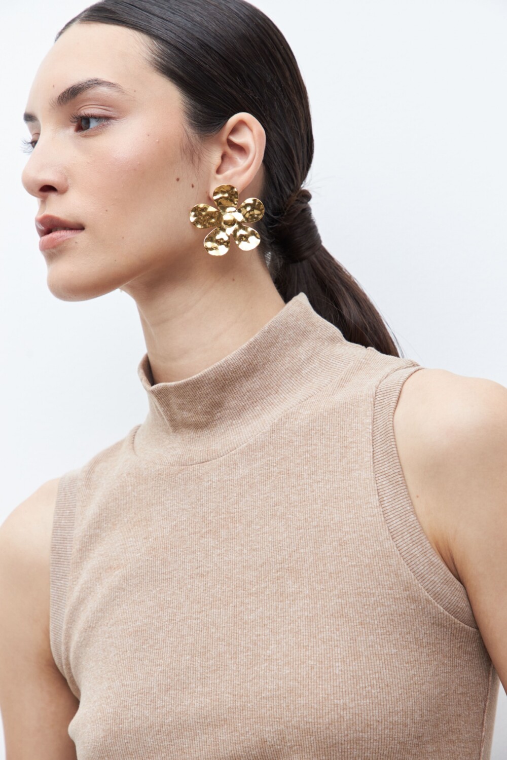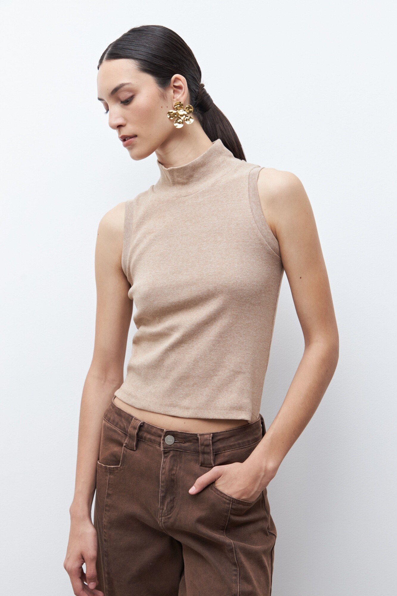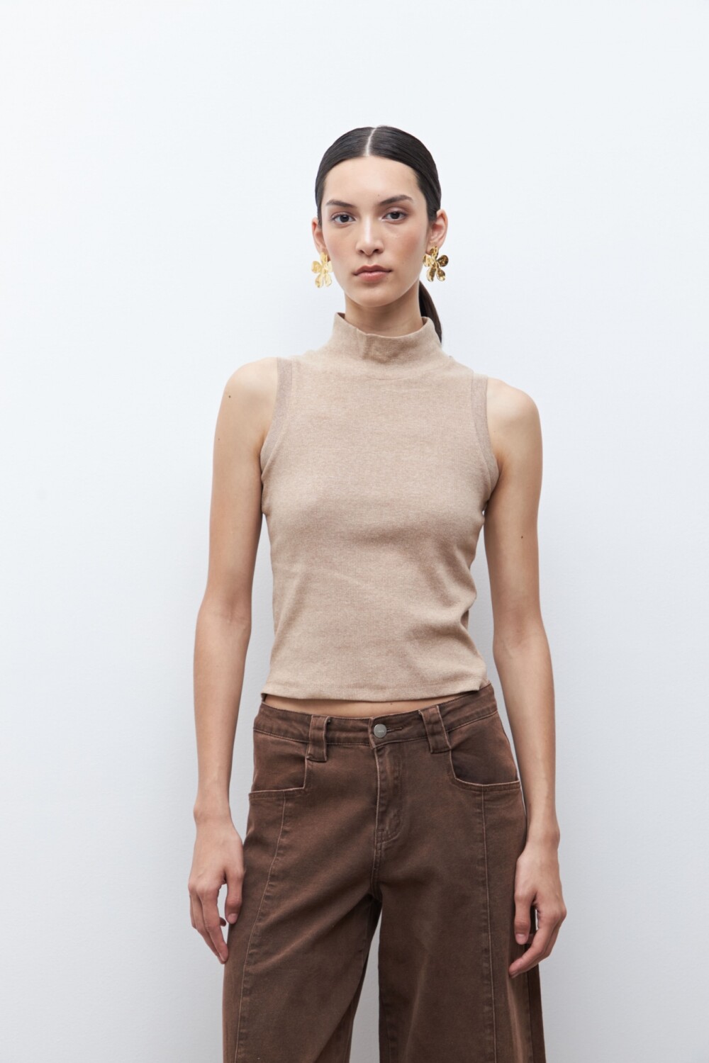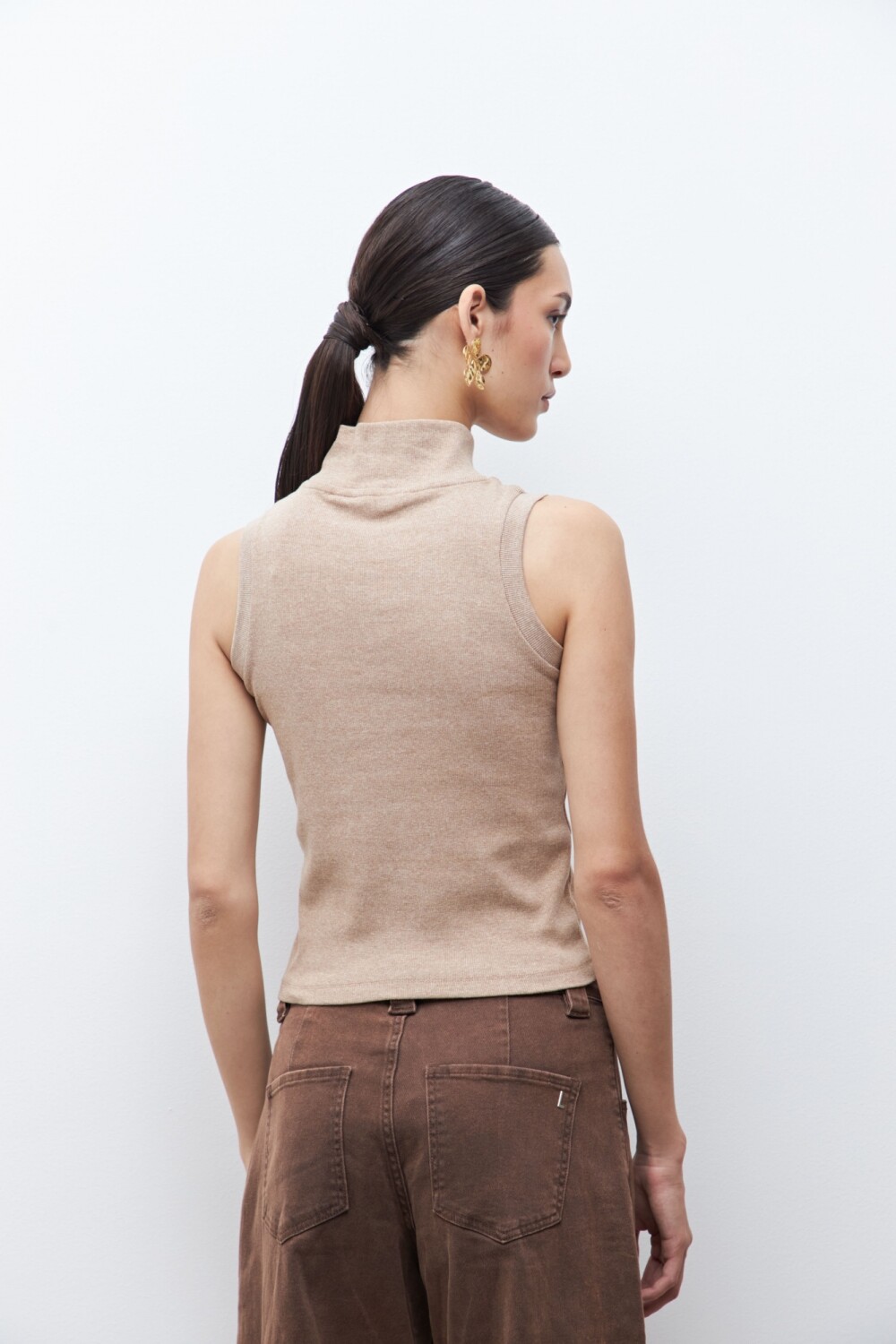 Top de cuello subido y manga sisa.