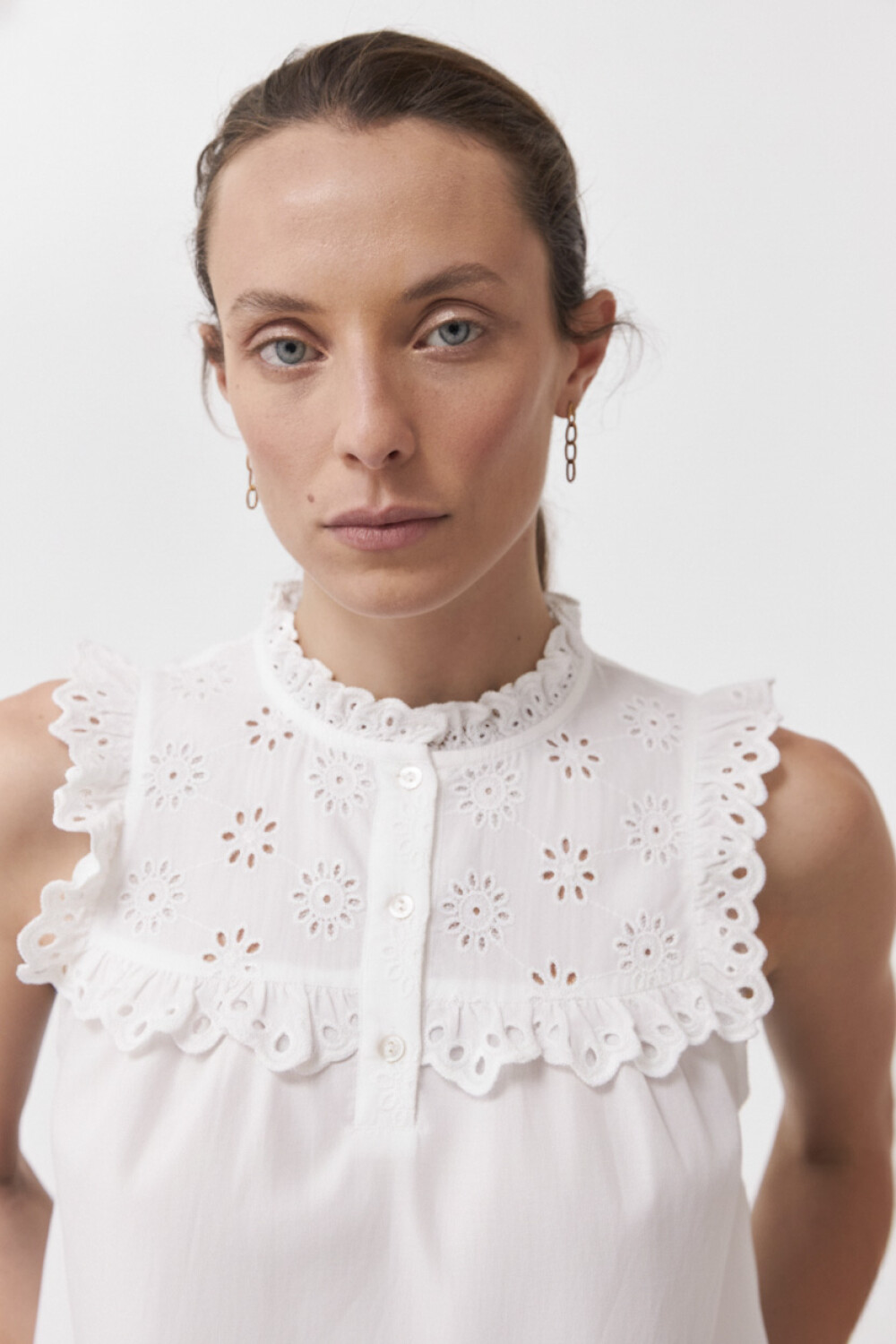 Nuevos IVA OFF Top con broderie y volados - blanco