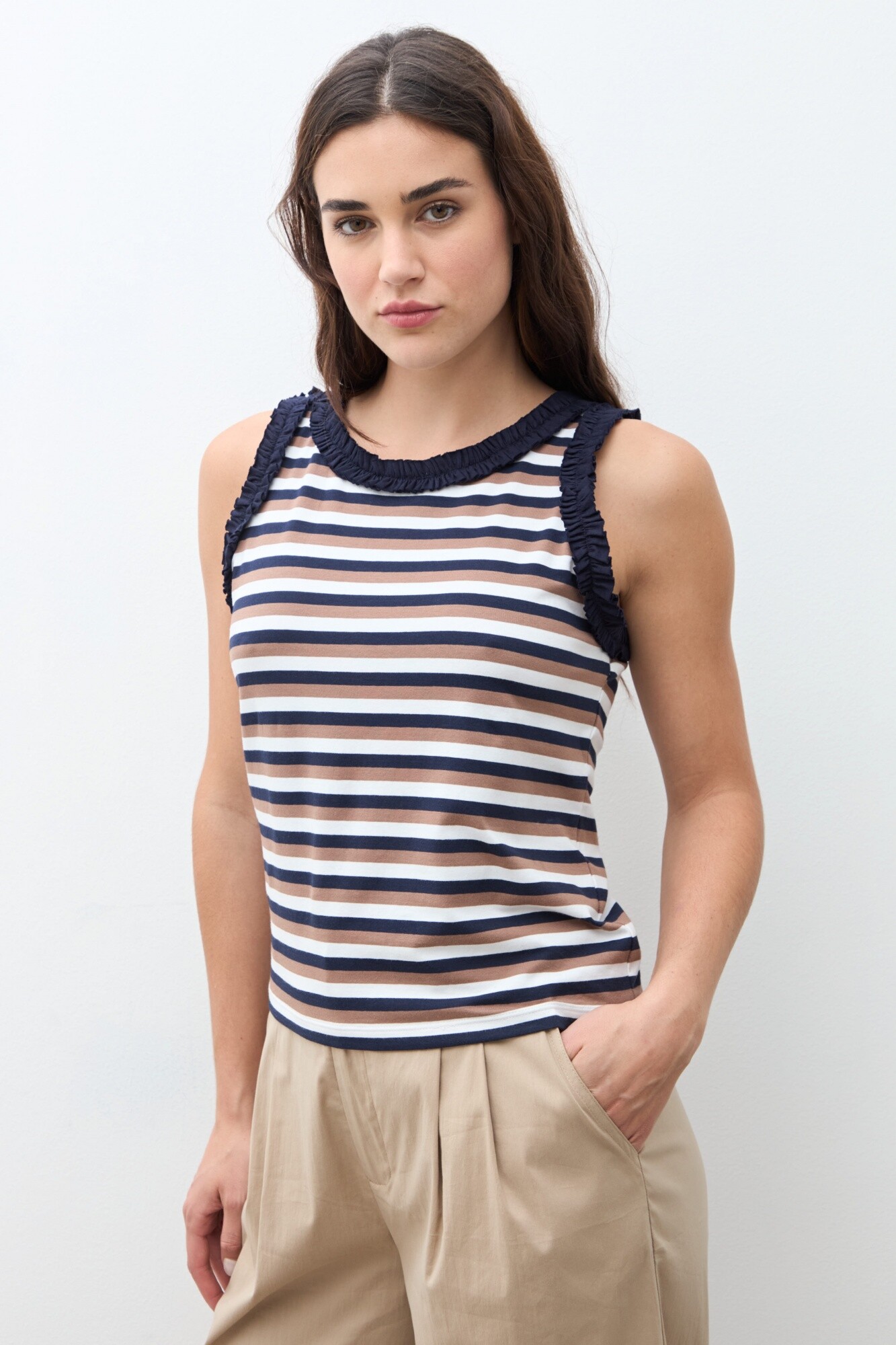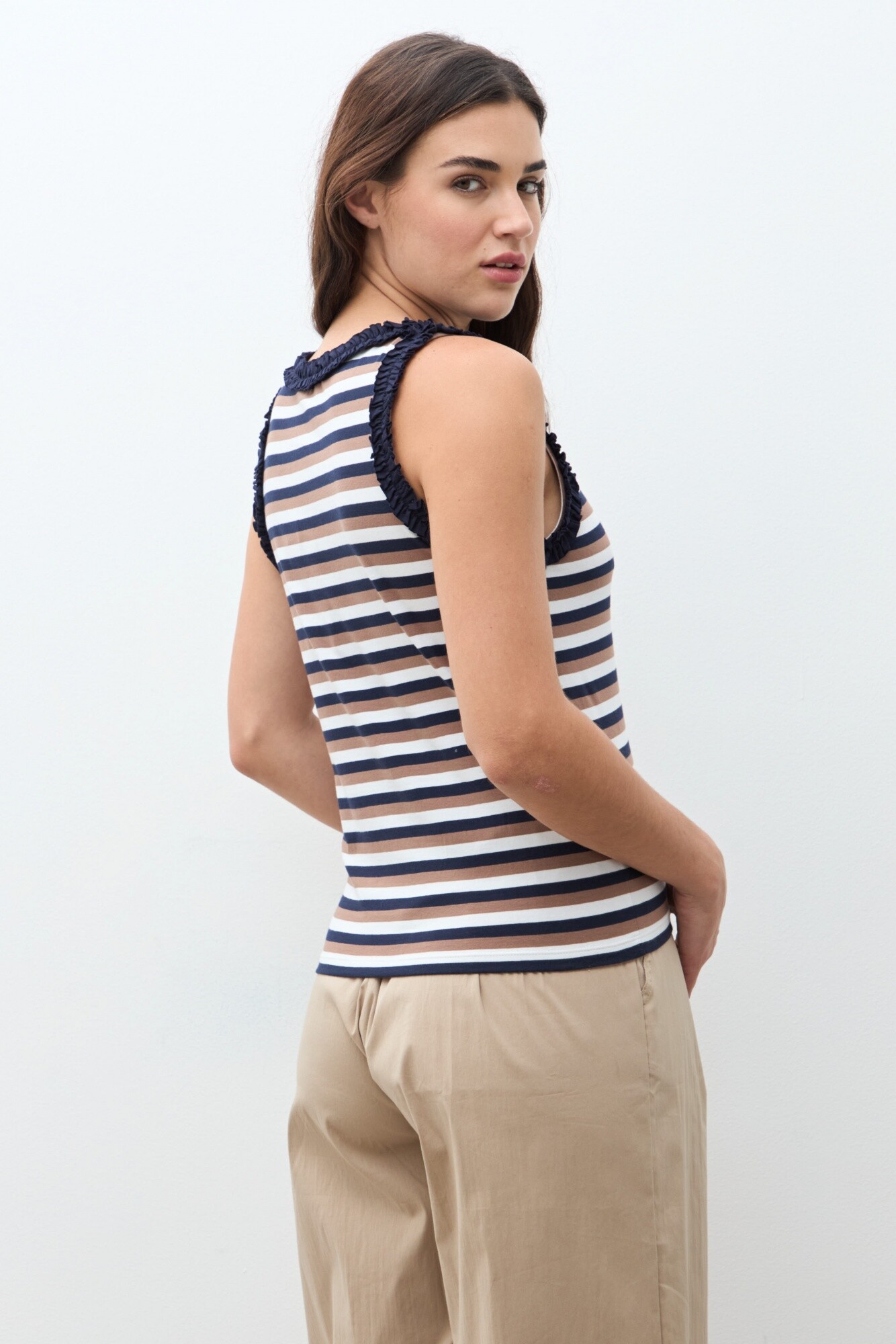 Top rayado con volados - azul marino