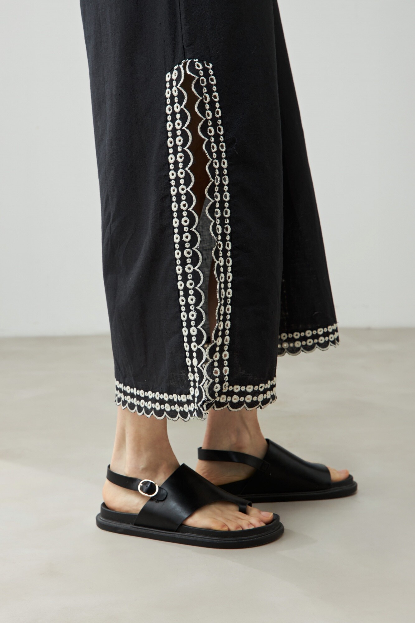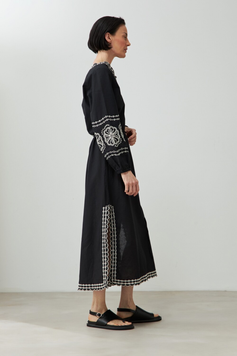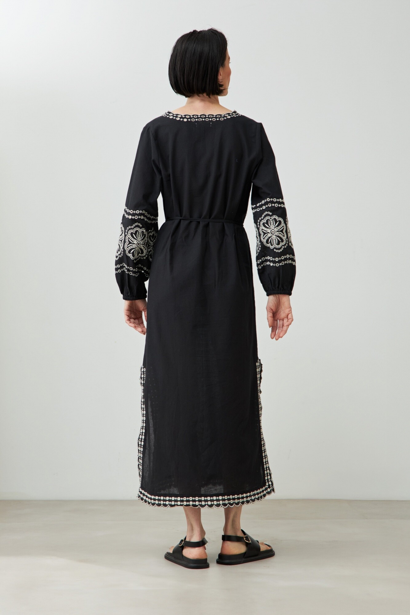 Túnica bordada de escote en V y manga larga. Tajos laterales.