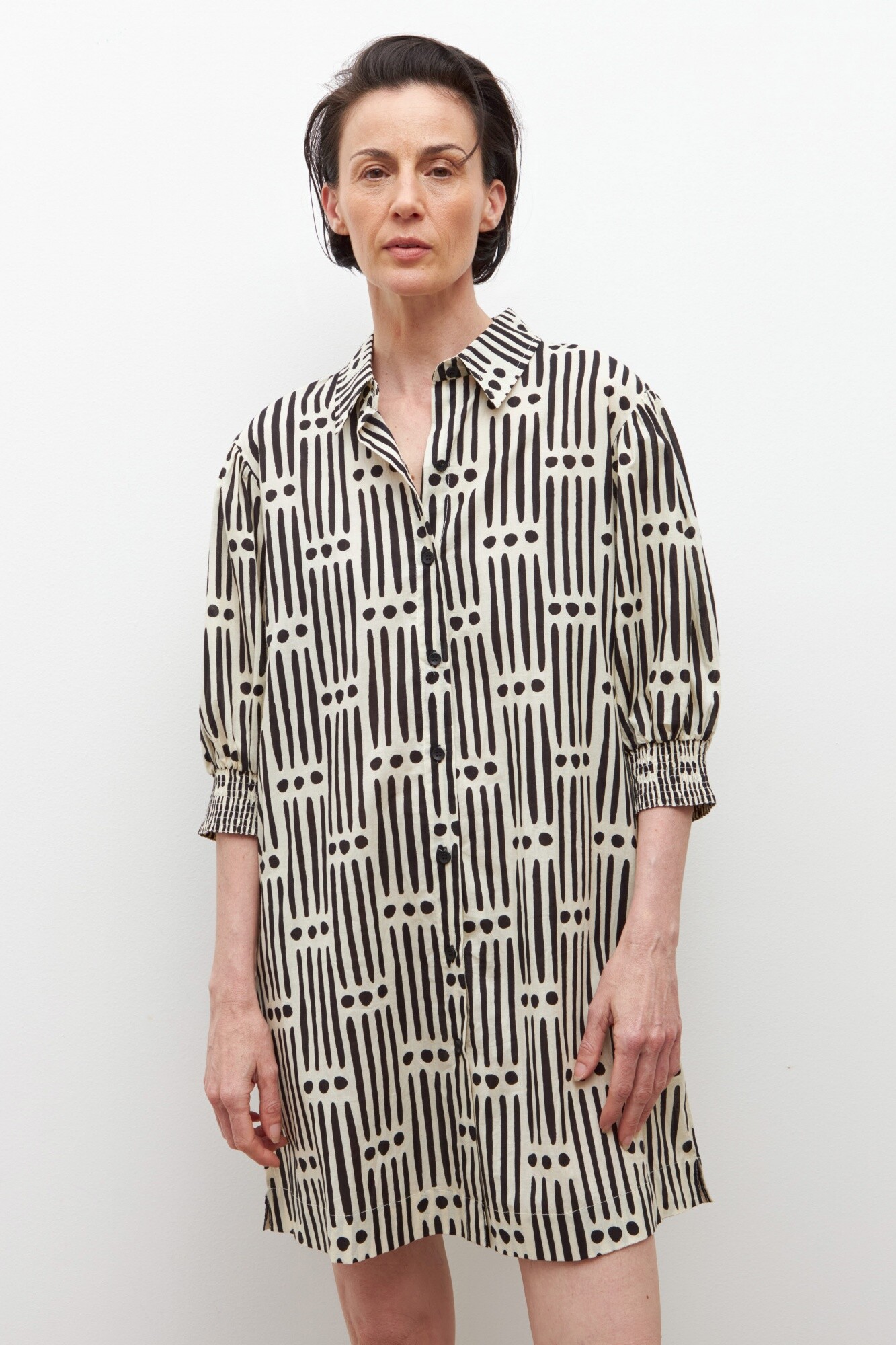 Vestido camisero estampado geométrico - negro