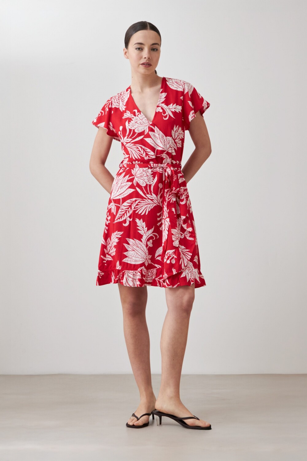 Vestido cruzado con estampa floral - rojo