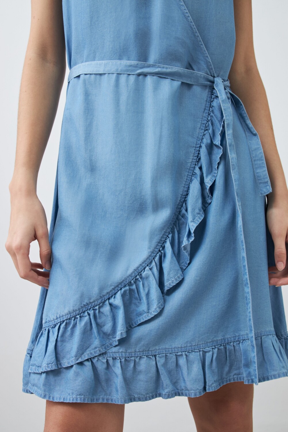 Vestido cruzado de lyocell - azul claro